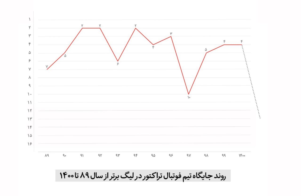 نمودار زیر روند جایگاه تراکتور از زمان بازگشت به لیگ برتر تا به امروز را نشان میدهد: