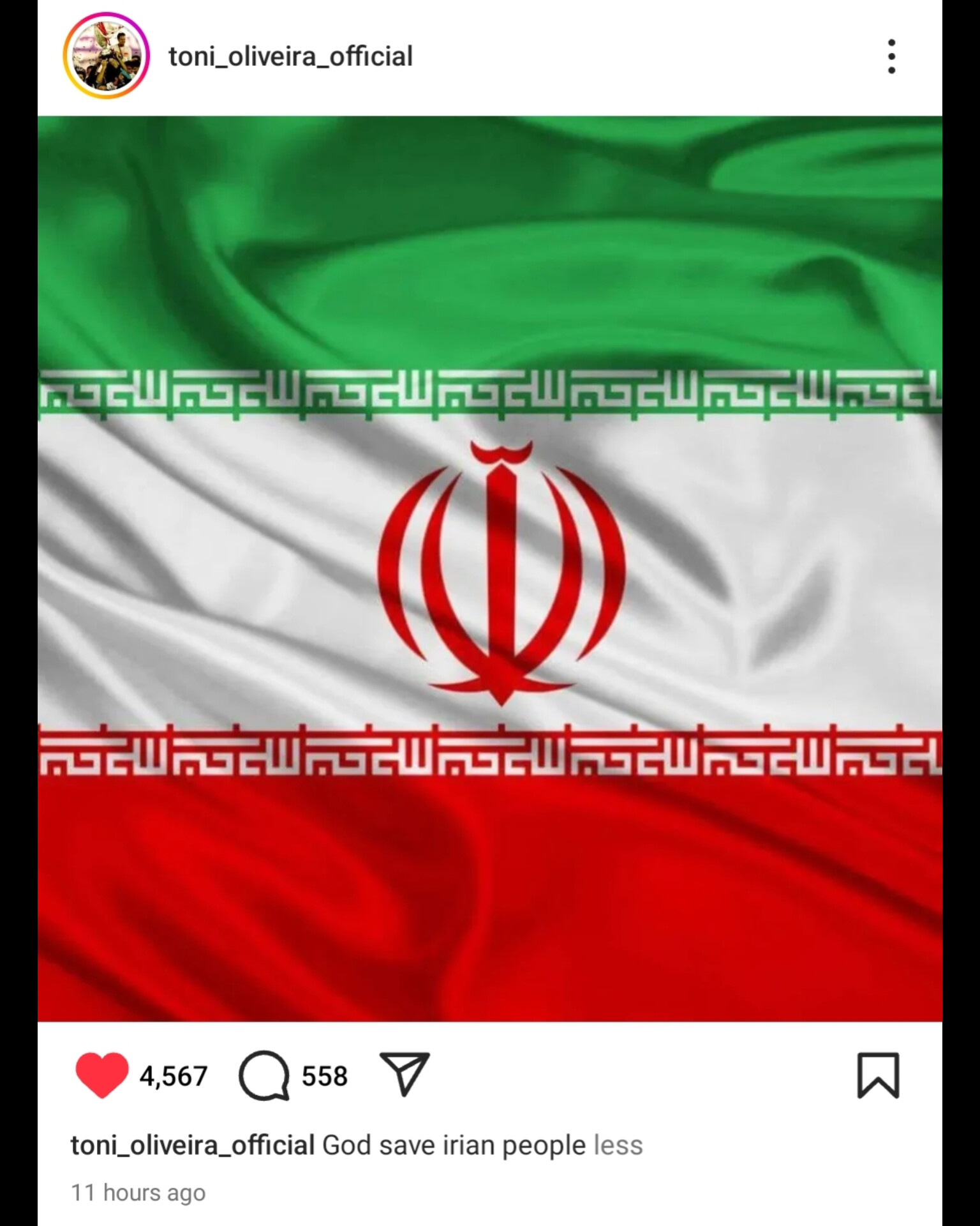 به گزارش خبرنگار سرویس ورزشی پایگاه خبری تحلیلی «آناج»، تونی اولیویرا، سرمربی پرتغالی سابق تیم فوتبال تراکتور و محبوب‌ترین چهره در میان هواداران این تیم با انتشار پستی در صفحه اجتماعی خود با مردم ایران در برابر تجاوز رژیم صهیونیستی ابراز همبستگی کرد.