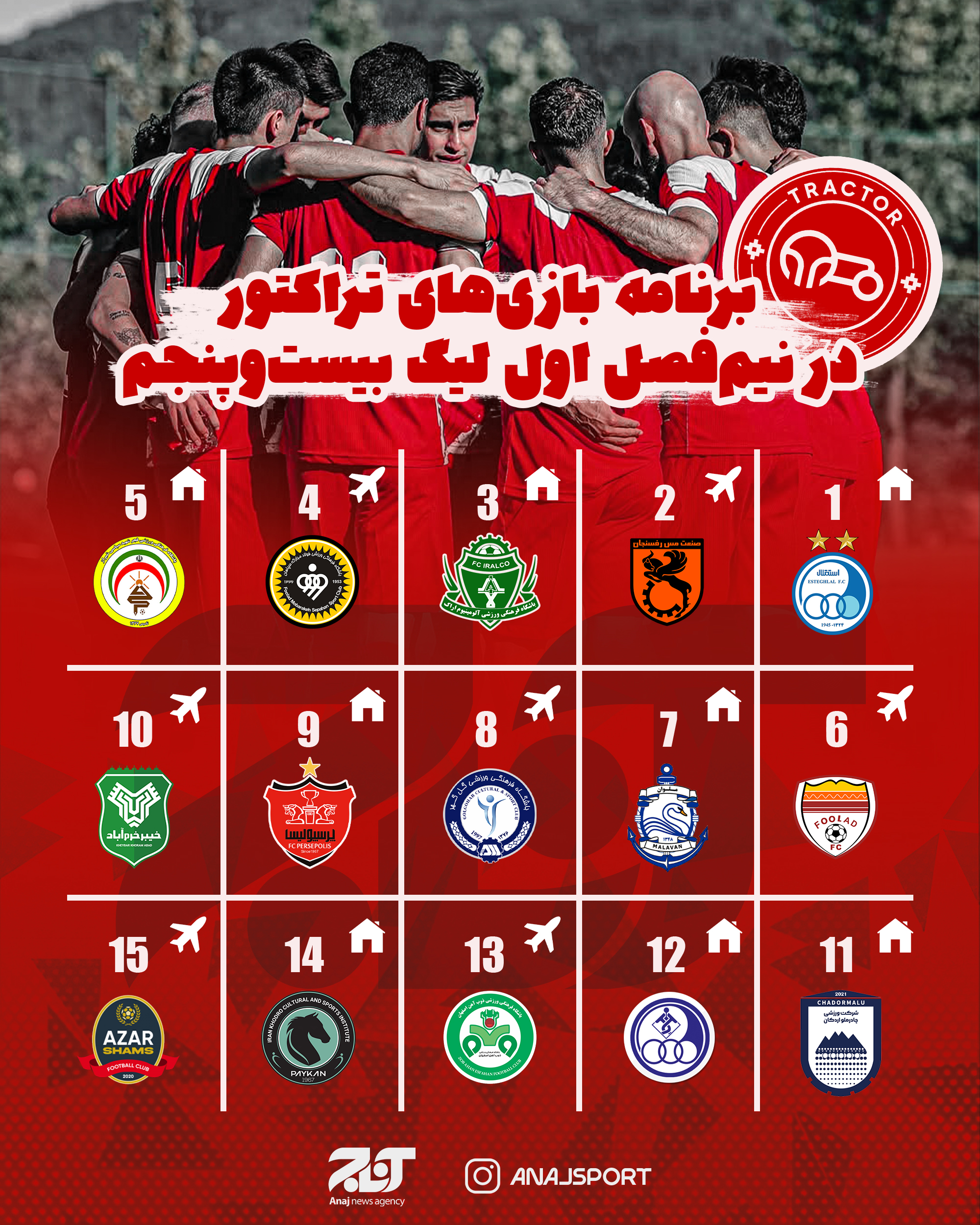 برنامه تراکتور در نیمفصل اول مسابقات لیگ برتر بدین شرح است: