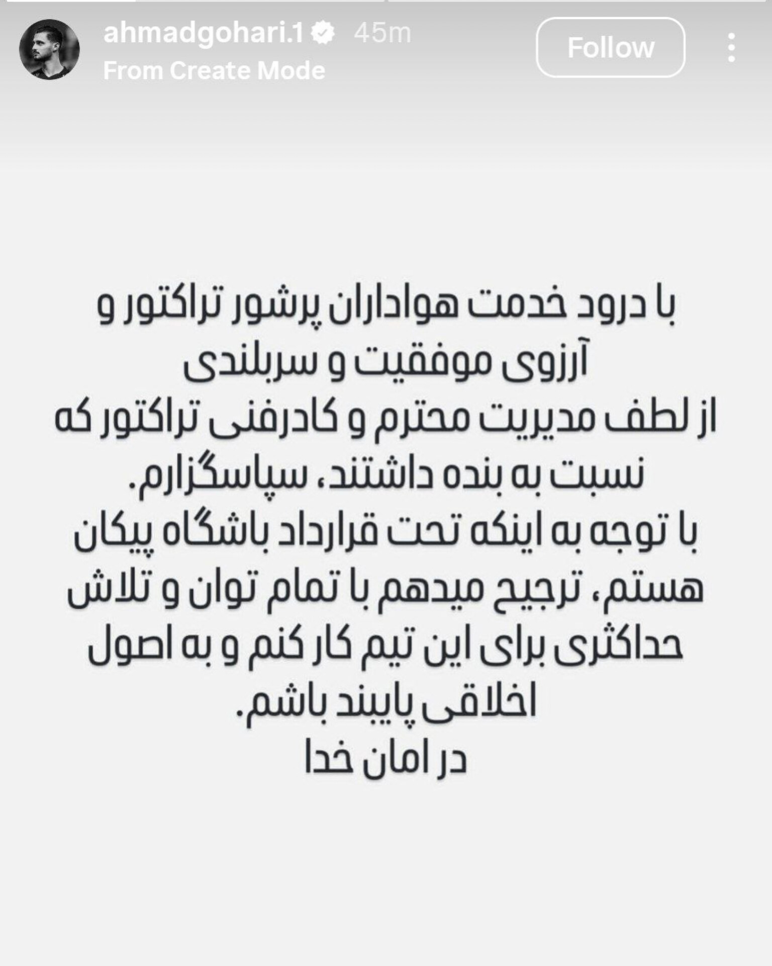 پیگیریها نشان میدهد این گلر باتجربه که مدتی بدون تیم بوده است، ساعاتی قبل از استوریهای مظفریزاده، صفحه رسمی باشگاه تراکتور در اینستاگرام را دنبال کرده تا شایعات پیرامون انتقالش به تبریز رنگ و بوی جدیتری بگیرد.