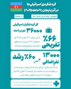 تعداد گردشگران اسرائیلی که به آذربایجان سفر کردهاند، در مقایسه با مدت مشابه سال گذشته ۱۳ هزار و ۶۱۹ نفر (معادل ۶۰.۷ درصد) افزایش یافته است.