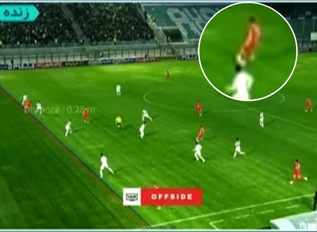 در این فریم که مبنای تصمیم داوران ویدیویی قرار گرفته، لحظه بهدرستی فریز نشده و توپ از پای بازیکن ارسال کننده فاصله دارد. این درحالی است که مطابق قوانین داوری، لحظه دقیق تماس اولیه توپ با پای پاسدهنده باید ملاک تعیین آفساید قرار گیرد!