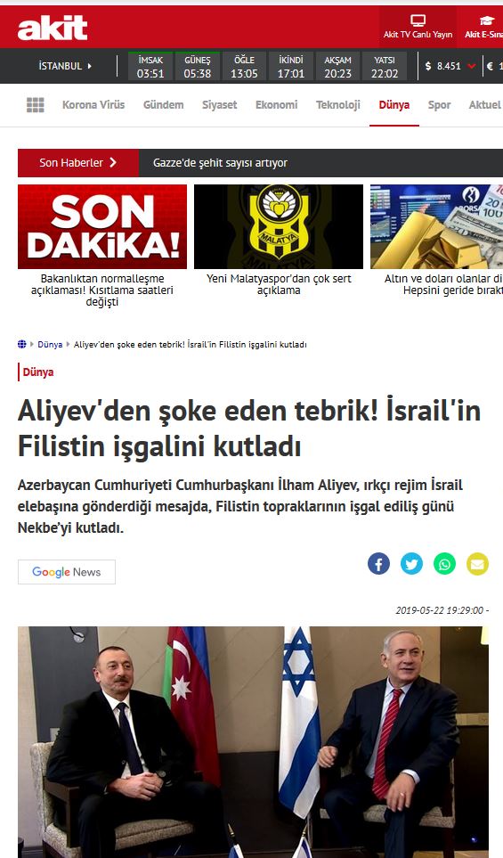 گفتنی است مطلب برخی رسانهها با عنوان «الهام علیاف در پیامی تأسیس کشور اسرائیل را که فلسطینیها از آن با عنوان روز نکبت یاد میکنند، به نخستوزیر رژیم اسرائیل تبریک گفت» مربوط به سال 2019 میلادی میباشد اما سکوت جمهوری آذربایجان در برابر حملات اسرائیل علیه مردم مظلوم فلسطین کاملاً مشهود است.