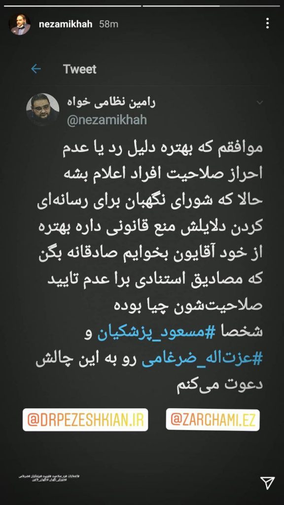 برخی فعال رسانهای و فضای مجازی در خصوص تایید صلاحیتها نوشتند: