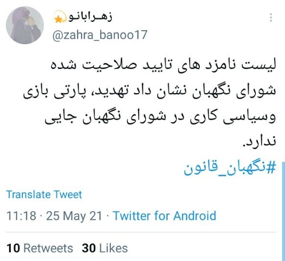 کاربران تبریزی توئیتر هم با هشتگ نگهبان_قانون از شورای نگهبان حمایت کردند.