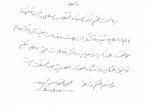 در ادامه تصویری از دست خط مرحوم مجتهد شبستری جهت تمایل برای انتشار خاطرات برای نخستین بار منتشر می‌شود.