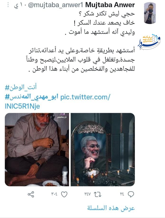 در عراق نیز در روزهای اخیر و بهخصوص در 24 ساعت گذشته بسیاری از شهروندان این کشور از هر طریقی علاقه خودشان را به این شهدا نشان میدهند بهطوری که تصاویر زیادی از این شهدا در شبکههای اجتماعی بهنمایشدرآمده است.
