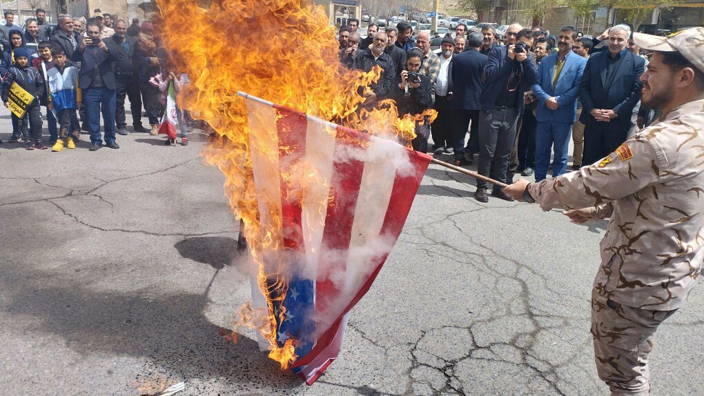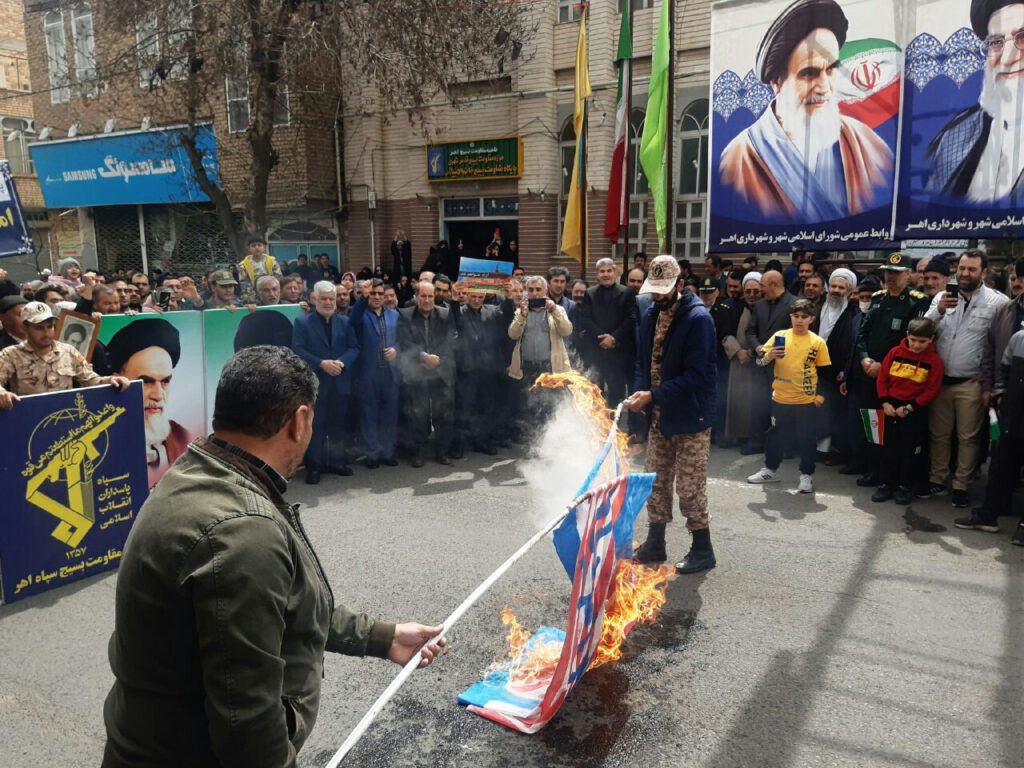 پرچم شیطان در آذربایجان‌شرقی به آتش کشیده شد