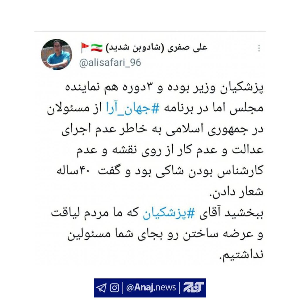 واکنش‌های مجازی به اظهارات پزشکیان در برنامه جهان‌آرا؛