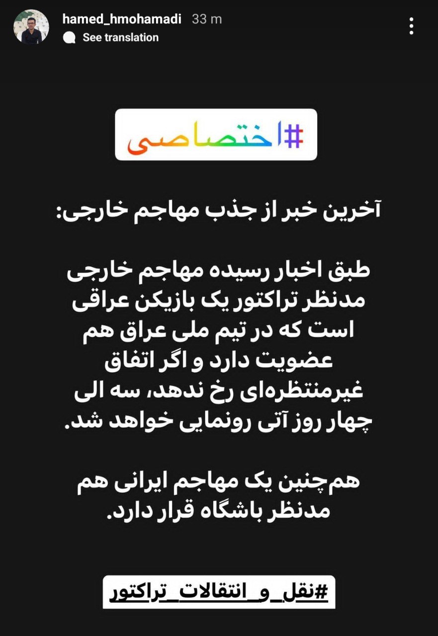 خبر می‌رسد باشگاه تراکتور آخرین سهمیه خارجی خود را به مهاجم تیم ملی عراق اختصاص داده است.