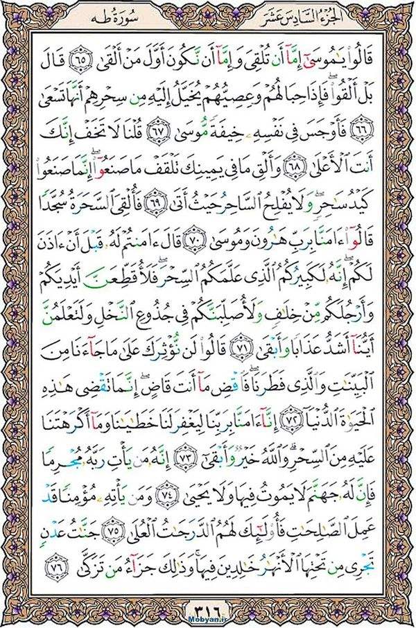 روز چهارشنبه را با تلاوت یک صفحه از سوره طه نورانی کنیم.