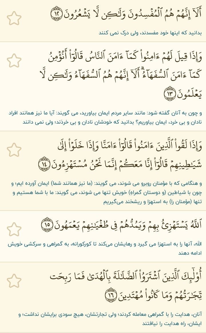 برای امروز آیات ۱۲ الی ۱۷ سوره بقره را میخوانیم: