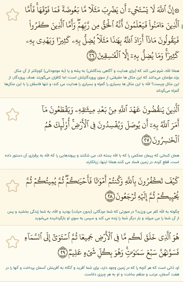 برای امروز آیات ۲۶ الی ۲۹ سوره بقره را میخوانیم: