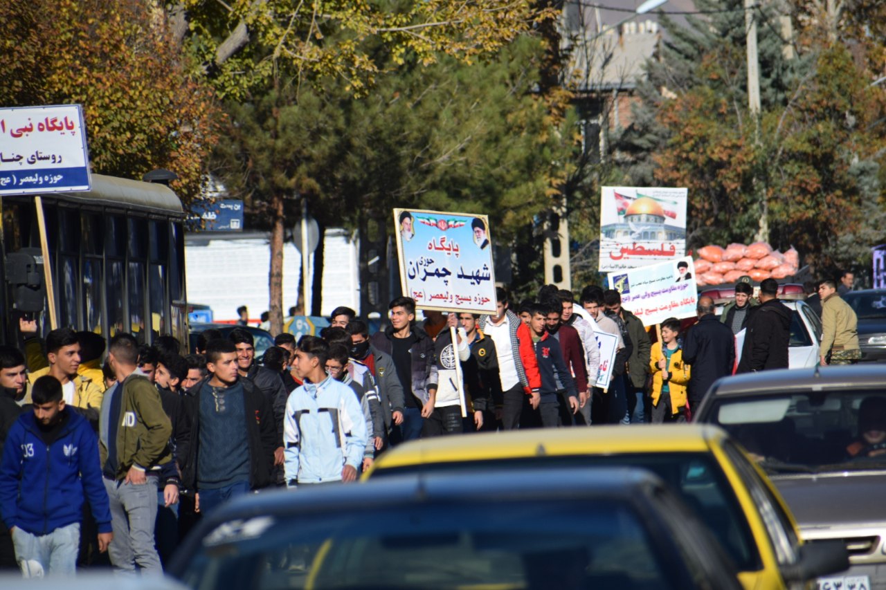 آنها با سردادن شعارهای مرگ بر آمریکا، مرگ بر اسرائیل، مرگ بر ضد ولایت فقیه، لبیک یا زینب، لبیک یا خامنهای بر تقویت هر چه بیشتر جبهه مقاومت انقلاب اسلامی در برابر رژیم کودک کش صهیونیستی و ضرورت مقابله با آمریکای جهان خوار و پیاده نظامش در داخل کشور تاکید کردند.