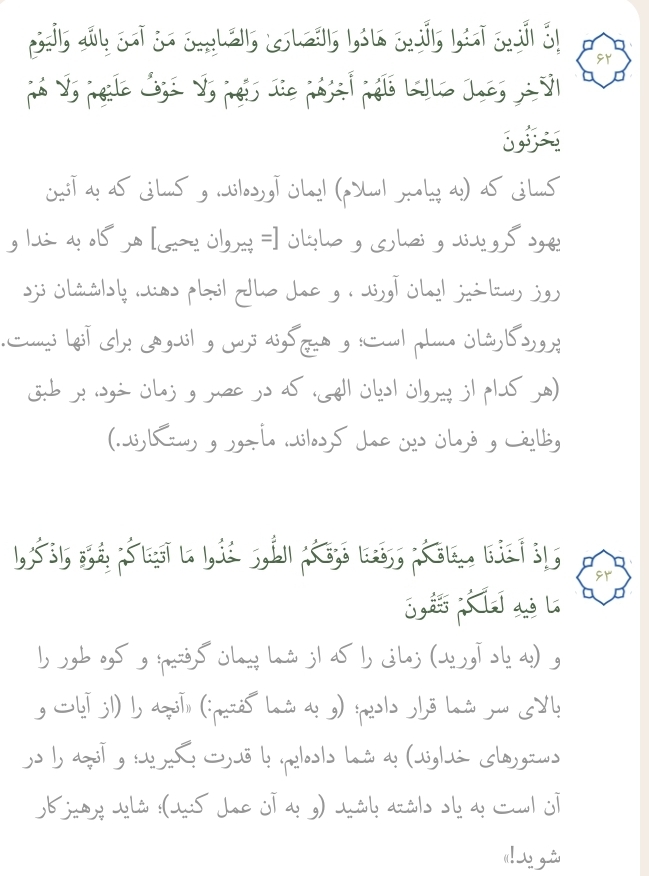 برای امروز آیات ۶۱ الی ۶۳ سوره بقره را میخوانیم: