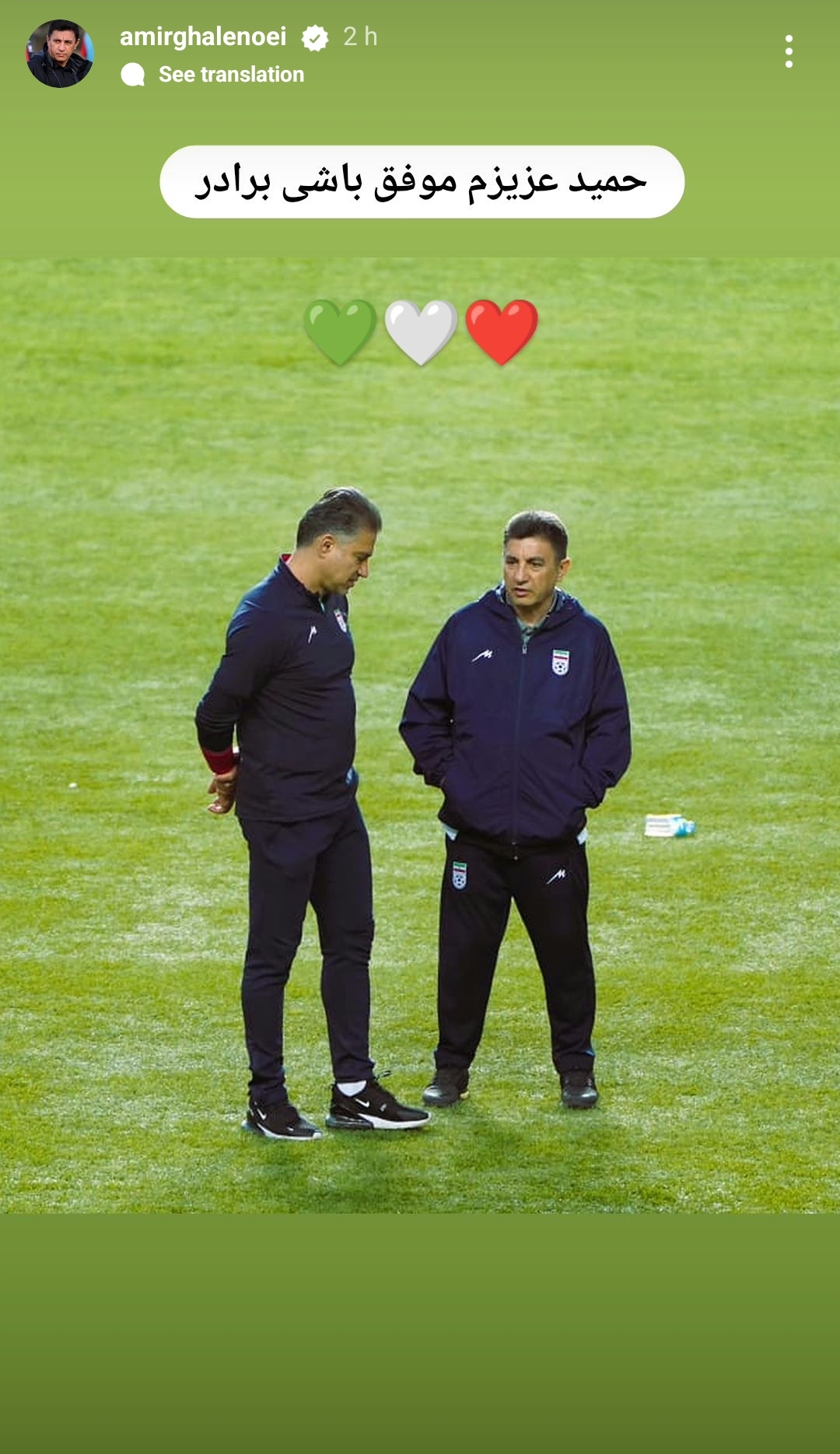 به گزارش خبرنگار سرویس ورزشی پایگاه خبری تحلیلی «آناج»، امیر قلعهنویی، سرمربی تیم ملی فوتبال کشور با انتشار یک استوری در صفحه اجتماعی خود از سرمربیگری حمید مطهری در تراکتور حمایت کرد.