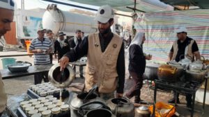 در دیگر سمت سیطره منتهی به حرم و داخل یکی از کوچهها، موکب اهالی شهرستان هریس نیز چند سالی از اربعین است که فعالیت میکند؛ البته آنها امسال پیشرفت خوبی در خدمترسانی داشتند و با گسترش آشپزخانه و ایجاد بخشهایی مانند امانتداری و… توانستهاند پا به پای دیگر مواکب به خدمترسانی زائرین مشغول شوند.