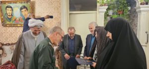 فرمانده سپاه عاشورا بههمین تابلو اشاره کرده و میگوید: «این خانواده، خانواده جهاد و شهادت است. این خانه هم خانه شهداست. خوشا بهحال ساکنان این خانه؛ ما آمدهایم برای توشه راهمان از این خانه تبرک برداریم؛ ما از خانواده شهدا روحیه میگیریم، انگیزه پیدا می کنیم؛ همه ما بدون تعارف مدیون خانواده شهداء هستیم.»