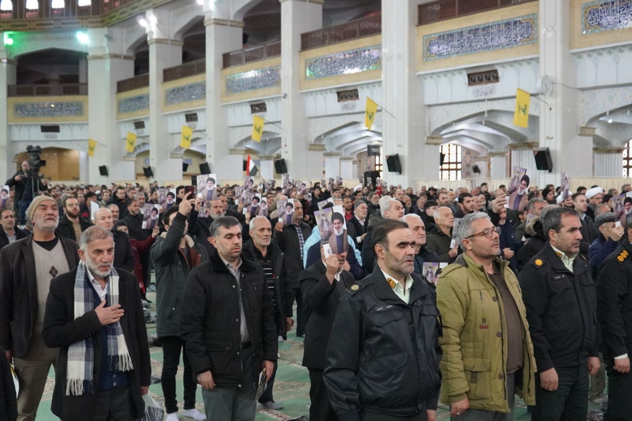 آئین تکریم شهیدان سیدحسن نصرالله و سید هاشم صفیالدین در مصلای امام تبریز