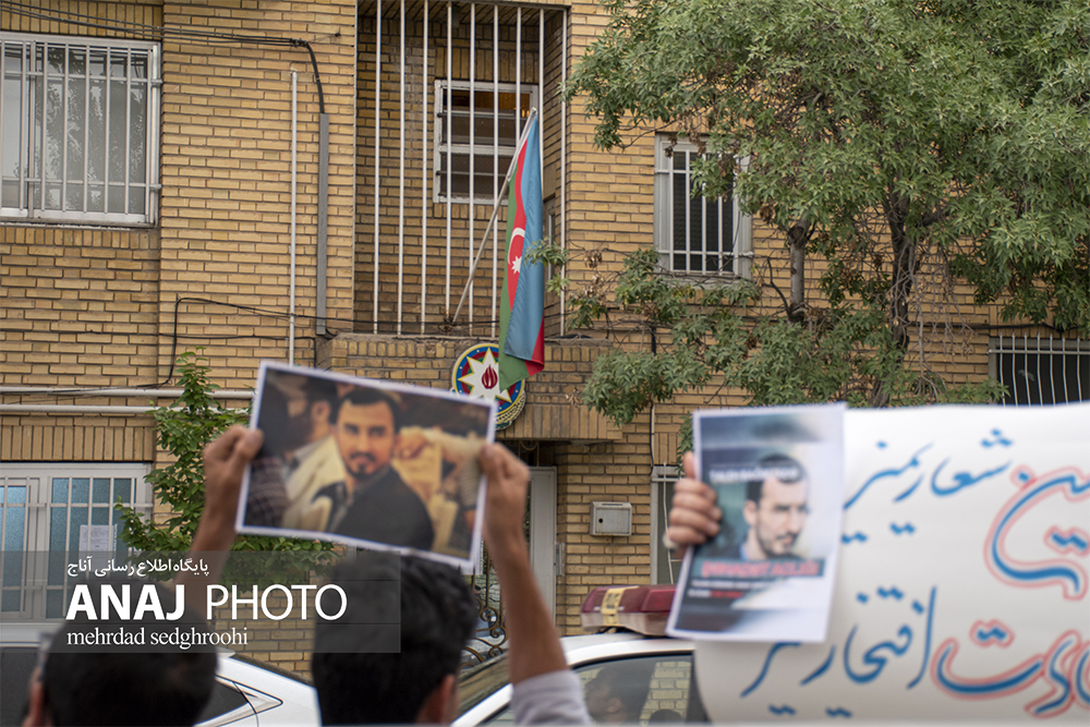 گزارش تصویری از جمع دانشجویان دانشگاه های شمالغرب کشور در مقابل کنسولگری جمهوری آذربایجان در تبریز،در اعتراض به اهانت به مقدسات دینی و مذهبی و شکنجه و زندانی نمودن شخصیت های دینی در این کشور.