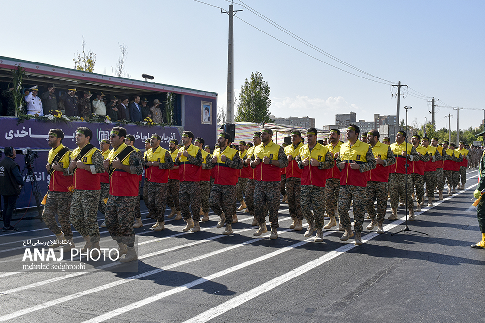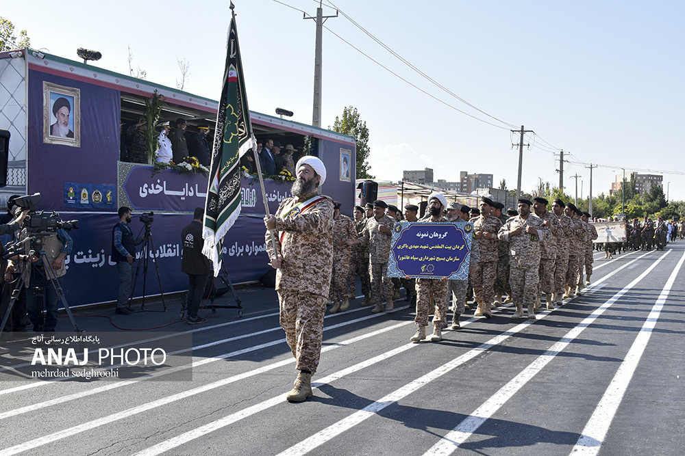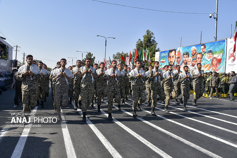 دوربین آناج از رژه نیروهای مسلح در آغاز هفته دفاعمقدس